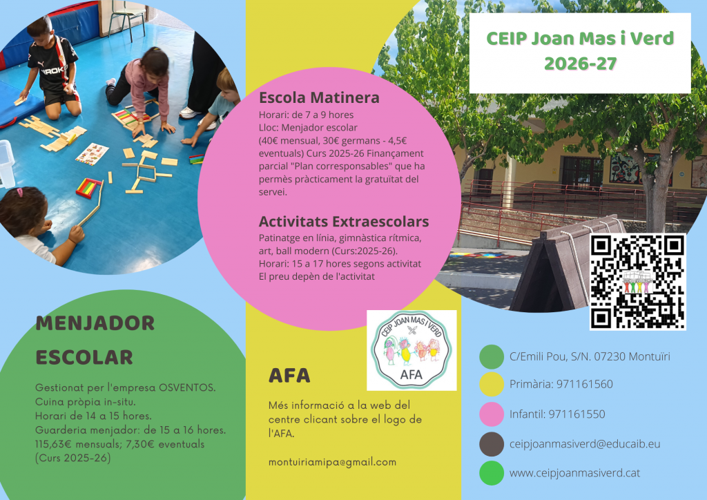 31/03/26El calendari escolar del curs 2026-27 ve establert per la següent resolució: Resolució del conseller d’Educació i Universitats per la qual s’estableix el calendari escolar del curs 2026-2027 per als centres docents no universitaris de la comunitat autònoma de les Illes Balears.